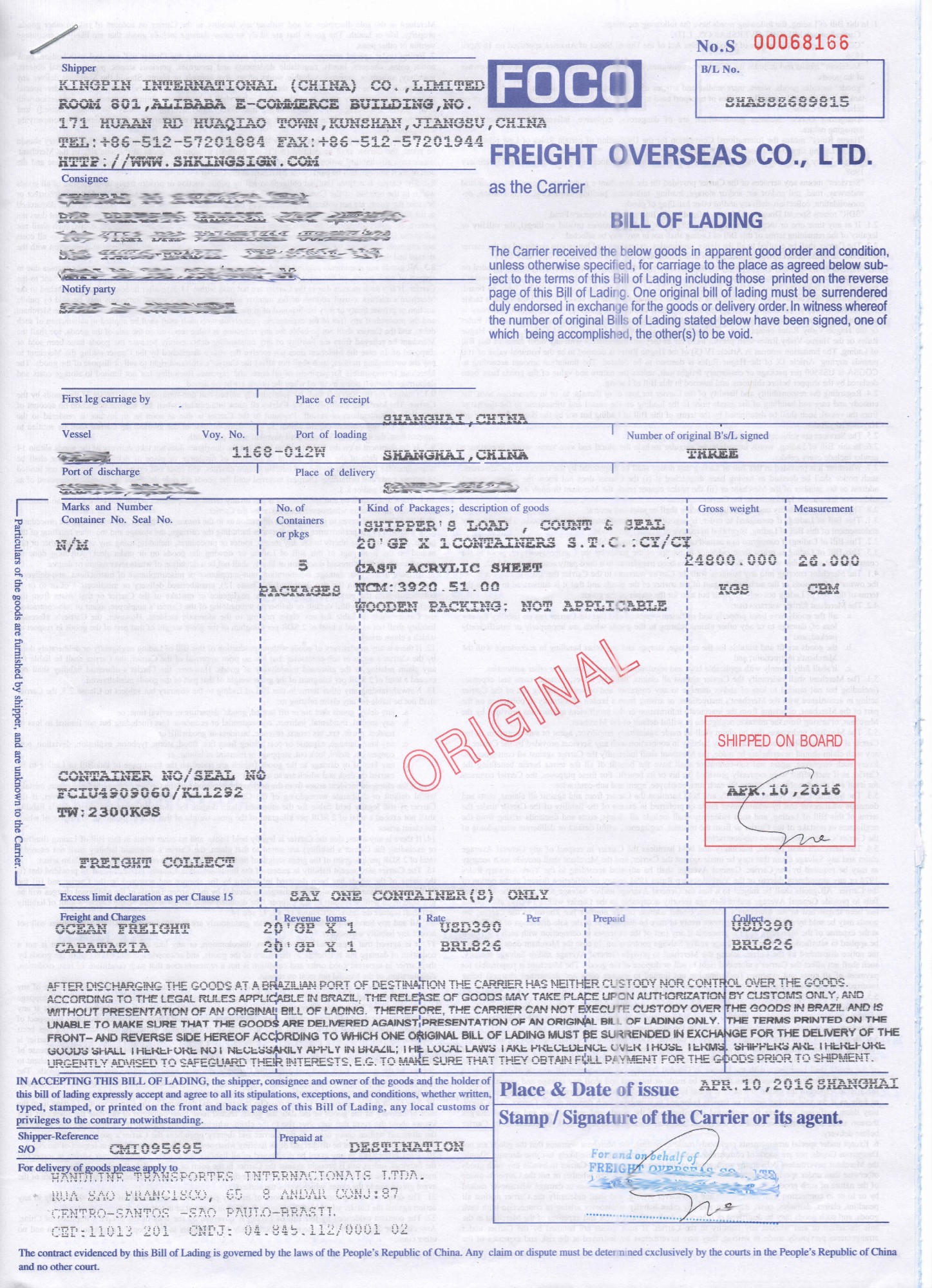 CONTAINER : 1*20GP