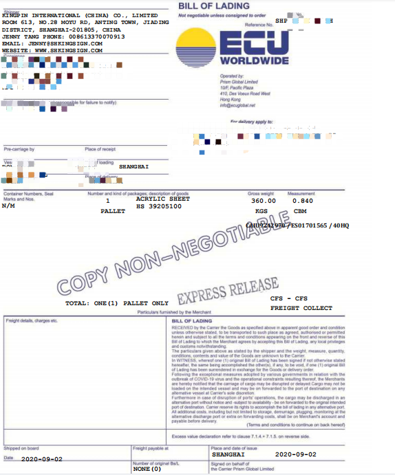 G.W: 360KGS